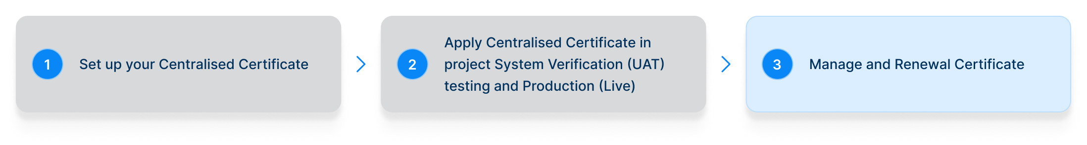 Continue with the Apply Centralised Certificate in Project. This is the guide on how to manage and renew a Centralised Certificate in Certificate management platform.